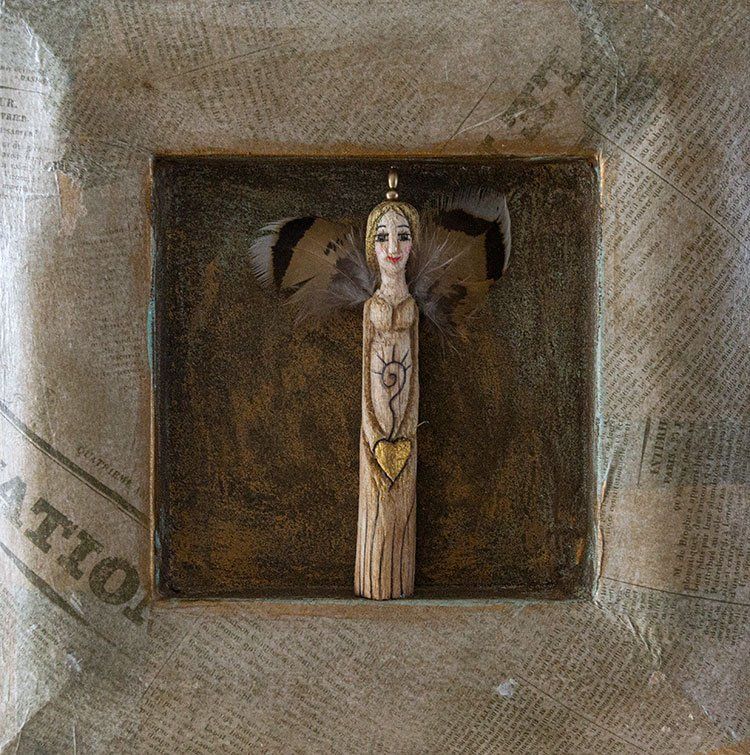 sind ganz kleine "engelsame" Wesen · Bilder mit meinen "engelsamen" Wesen oder mit Drucken meiner Engel, Wunscherfüllerinnen Kette in einer individuellen kleinen Schachtel oder kleine "engelsame" Anhänger.