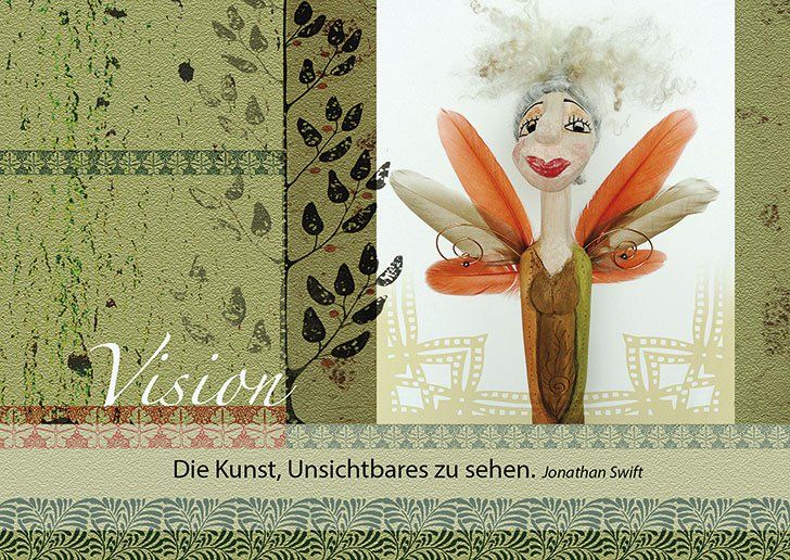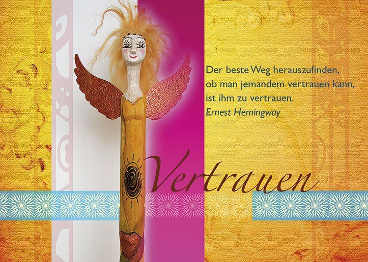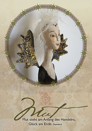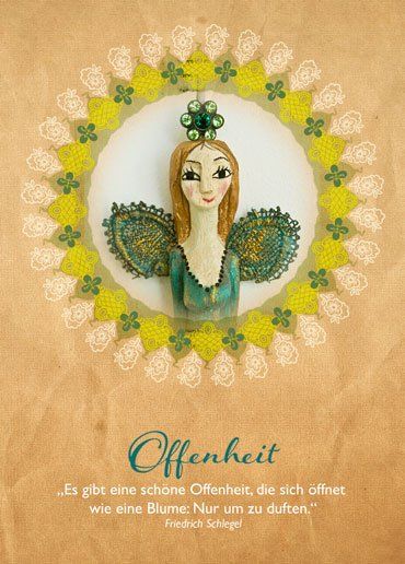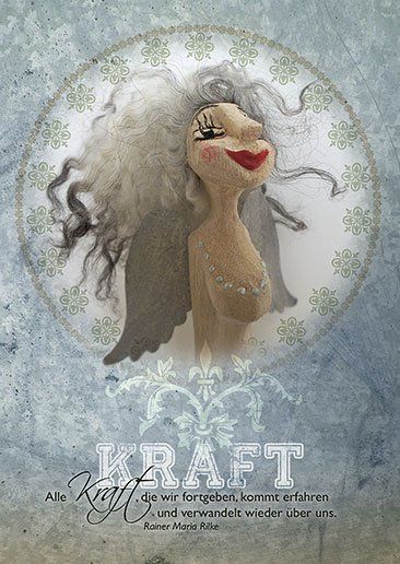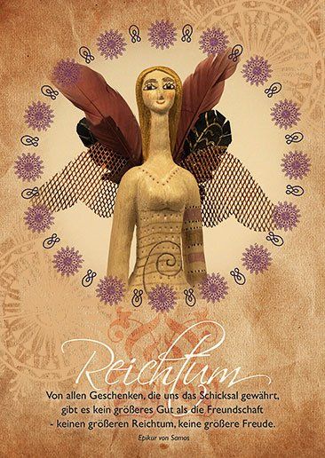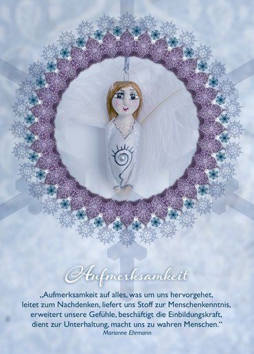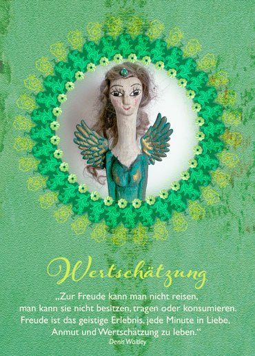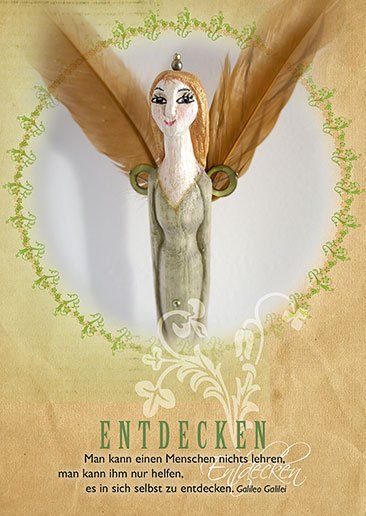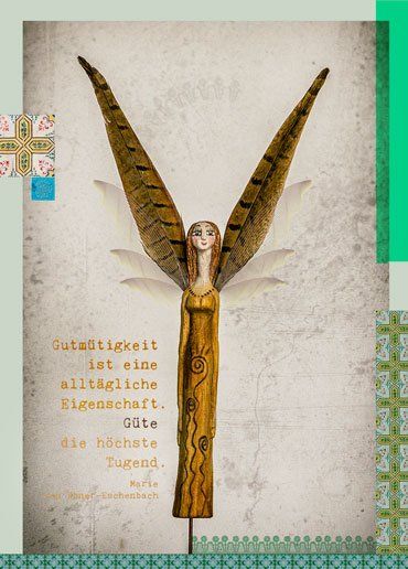 Aus den Kalenderblättern lasse ich Postkarten enstehen. Ebenfalls mit den Engelsamen Wesen und Zitaten zu wichtigen Eigenschaften und Tugenden, wie zum Beispiel Mut, Freundschaft, Geduld ...